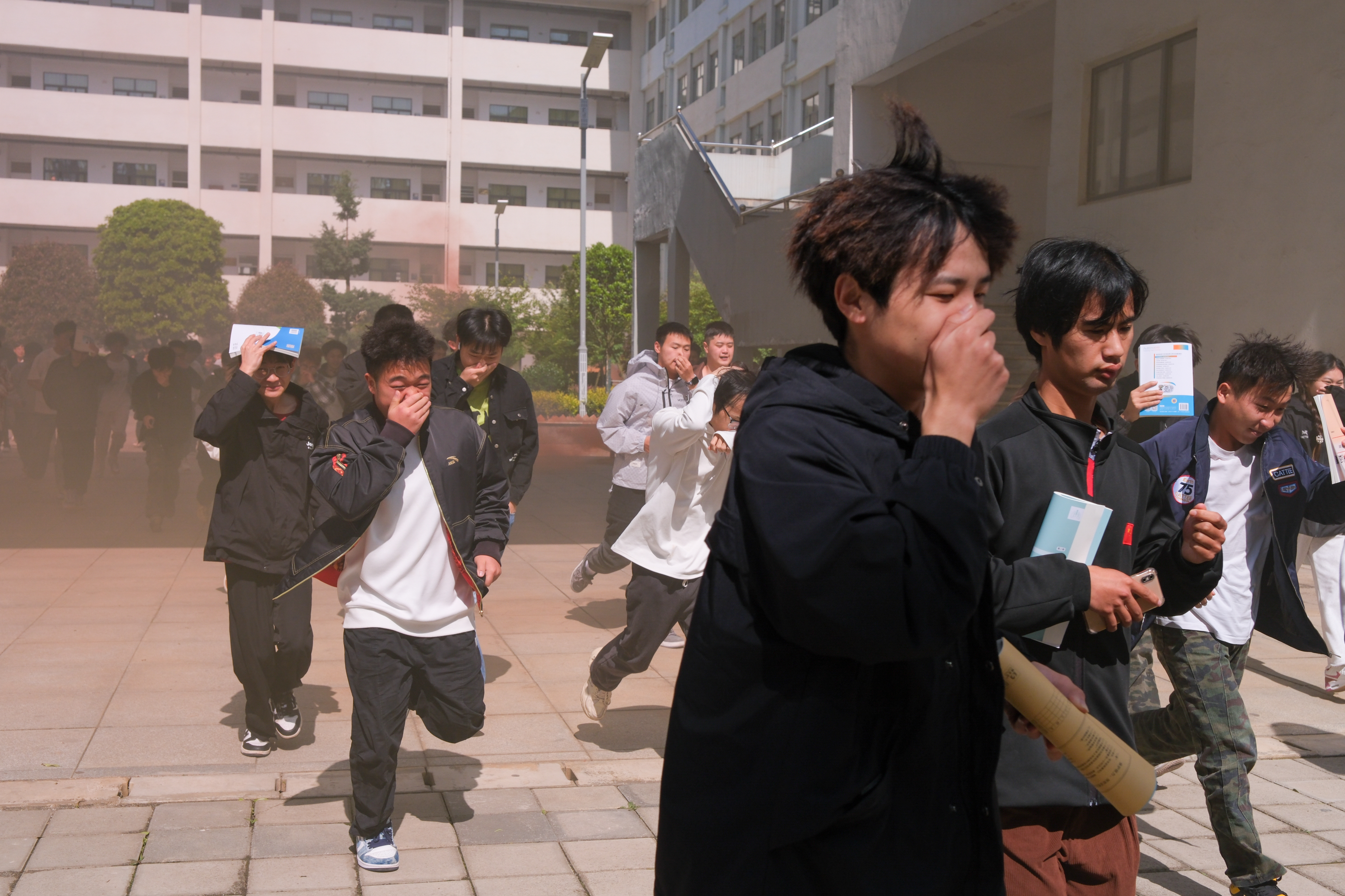 在第 17 个全国防灾减灾日到来之际,学工处联合保卫处组织开展了 “5.12” 防震演练活动。本次演练以 “防范灾害风险·护航高质量发展” 为主题,校党委副书记、纪委书记聂立新,校党委委员、副校长宋新乐、杨金钱,学工处、保卫处全体成员及一教全体师生共同参与,全面提升全校师生防震减灾意识与应急避险能力。