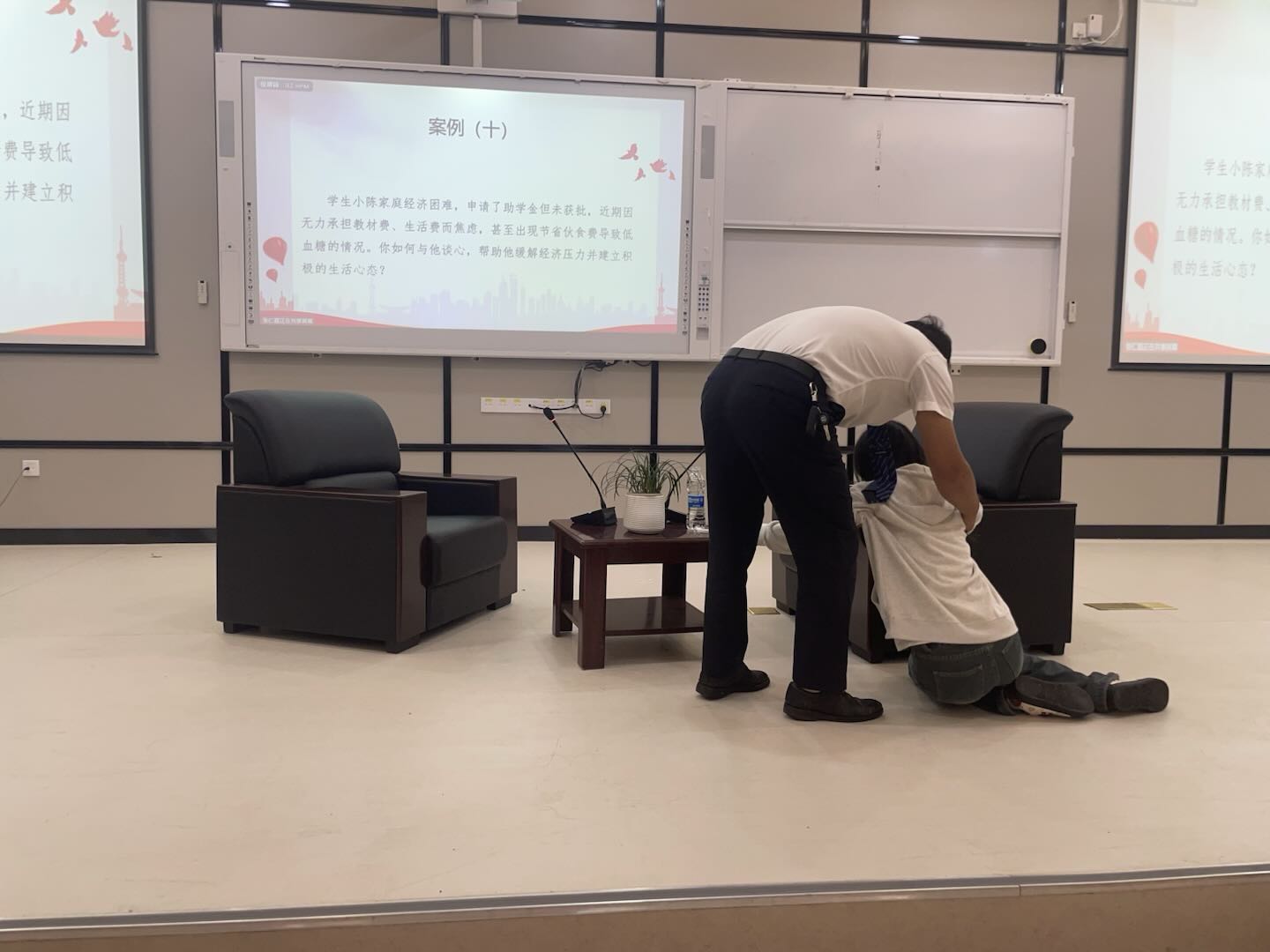 10月17日,谈心谈话情景模拟如期进行。参赛辅导员抽取涵盖学生违纪处理思想引导、家庭经济困难学生心理关怀、学生职业规划指导、实习岗位适配建议等场景,与助演学生开展10分钟模拟谈话。过程中,辅导员们凭借出色的沟通技巧、精准的问题把握能力,既关注学生的思想动态,又聚焦其职业发展需求,有效引导学生化解困惑、明确方向,全面彰显了辅导员“思政育人”与“职业引航”双融合的实践能力。
