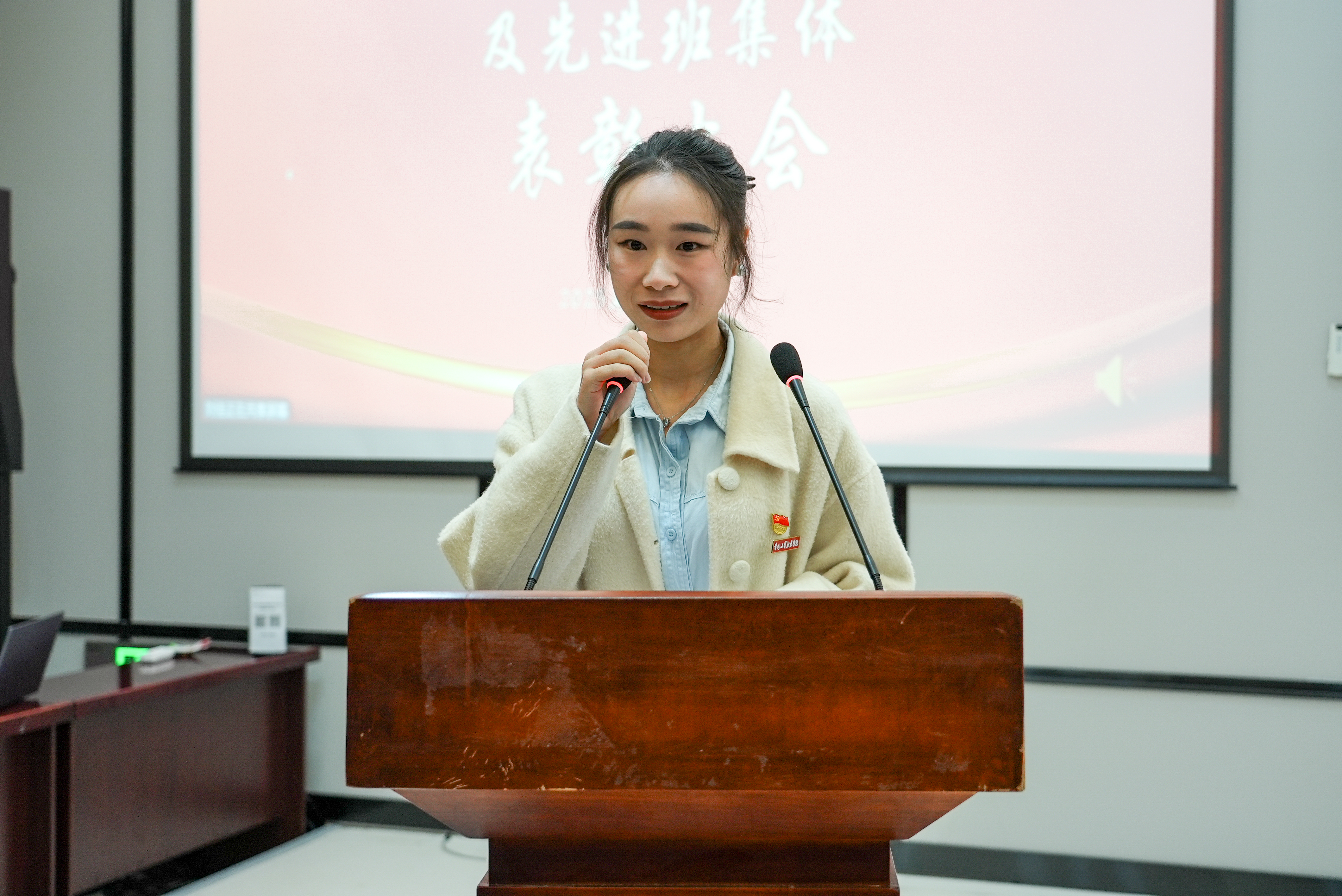 在获奖代表发言环节,三好学生代表围绕 “勤学善思,笃行致远”为主题,分享了个人学习方法与心得,表达了感恩学校培养、不负韶华的坚定决心;优秀学生干部代表以 “责任在肩,服务同学” 为核心,讲述了班级管理工作中的经验与感悟,承诺将持续发挥桥梁纽带作用,助力班级管理;先进班集体代表立足 “团结协作,共筑成长” 理念,介绍了班级在学风建设、活动开展等方面的具体做法与显著成效,充分展现了班集体的良好精神风貌。各位代表的发言真挚动人,引发了现场师生的强烈共鸣。