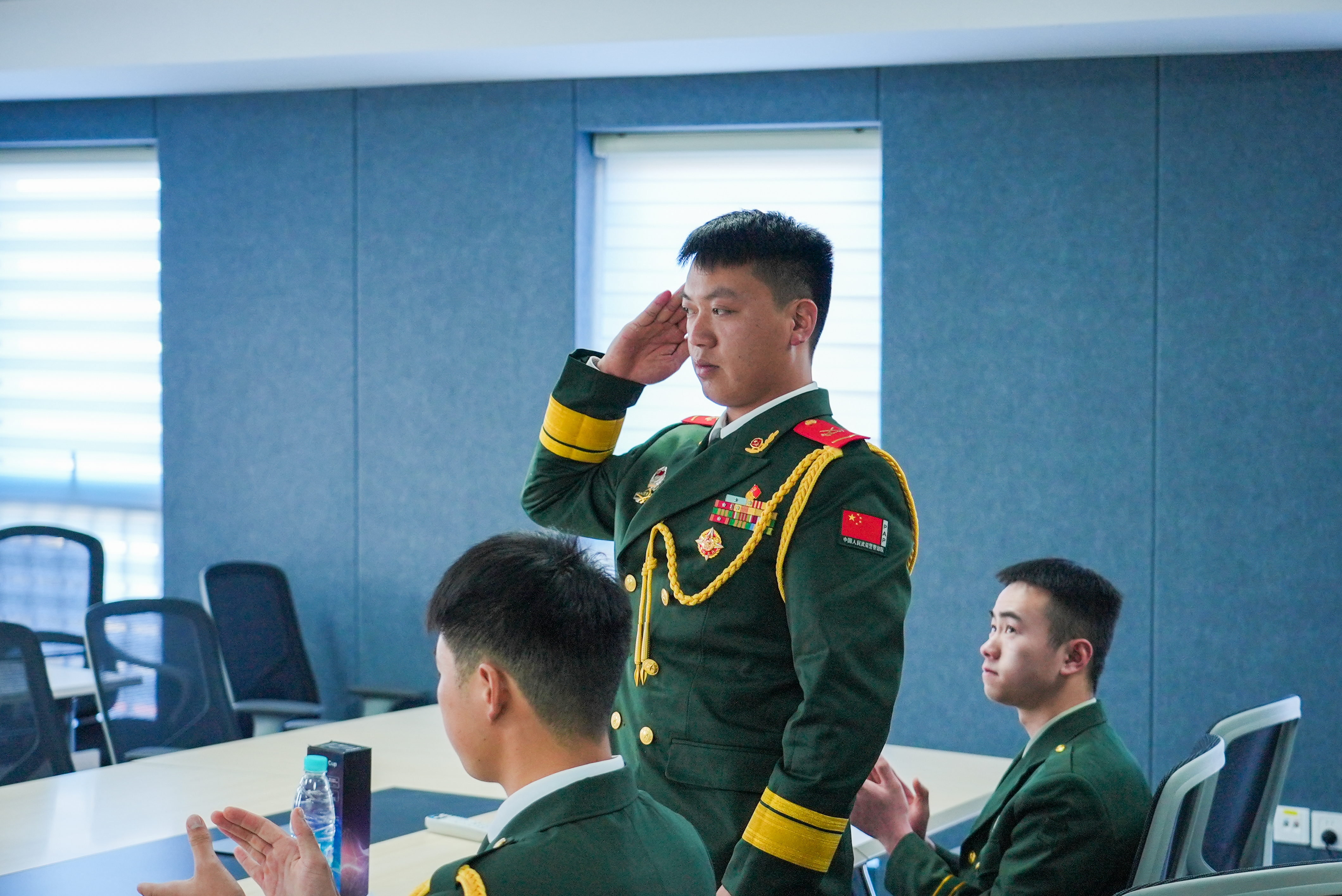 在学生代表入伍心得分享环节,5 位学生代表依次讲述军旅经历,生动还原了边境巡逻的坚守执着、训练场上的拼搏奋进等难忘瞬间,从戈壁滩的烈日灼灼到执行任务的坚定执着,洪水救灾中的生死考验,每一个瞬间都直击人心。他们的故事充分展现了军人的责任与荣光,引发全场人员强烈共鸣。