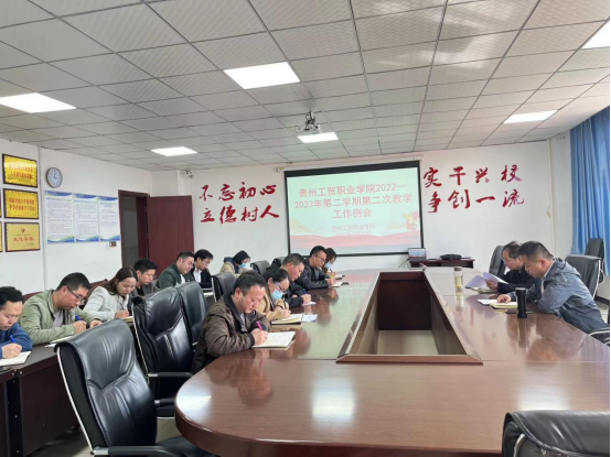 2022-2023学年度第二次教学工作例会于2023年3月20日,在综合楼三楼会议室由教务处处长主持召开,参会人员主要有李建萍副校长、教务处全体人员、二级教学单位负责人及教务科长。