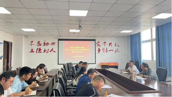 首先,教务处长对5月份相关工作作出汇报:并安排下一步工作计划。即5月份工作完成情况:完成2022—2023学年度第二学期教师教学能力竞赛;启动《beat365官方网站校级教学科研课题管理办法》申报工作;完成22级学生用书及教师用书的征订;完成国家级、省级教育科学规划课题和教育科学研究优秀成果的评选及相关资料的上报;完成毕节市高技能人才的上报;根据《省教育厅办公室关于做好2023年职业教育活动周相关工作的通知》,完成技能活动周相关工作。