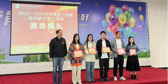 最后获奖教师与校领导合影留念,通过本次竞赛为广大教师搭建起一个自我展示与学习交流的平台,对于激发教师的教学激情,全面提升教师的教学水平,不断提高学校整体教学质量具有重要的促进作用。