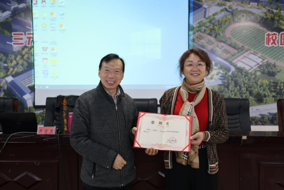 最后,由我校党委副书记、校长黄士安为卢教授颁发客座教授聘任证书。今后卢教授将指导我校教师教材编写、审核。