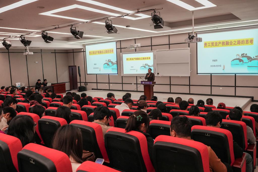 29日下午,校党委副书记、校长李建萍以《贵工贸走产教融合之路的思考》为主题,为我校师生做专题报告。从为什么要产教融合,真正的产教融合是什么样的,产教融合、工学结合、产学合作、校企合作,产教融合的七种模式,产教融合的典型案例、教育部关于产教融合的最新文件、贵工贸产教融合的新时代等七个方面进行报告。