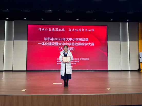 10月31日,在毕节职业技术学院落幕的“毕节市2025年大中小学思政课一体化建设暨大学学段思政课教学大赛”中,beat365官方网站选派的三位青年教师凭借扎实功底与出色表现,从众多参赛者中脱颖而出,载誉而归。