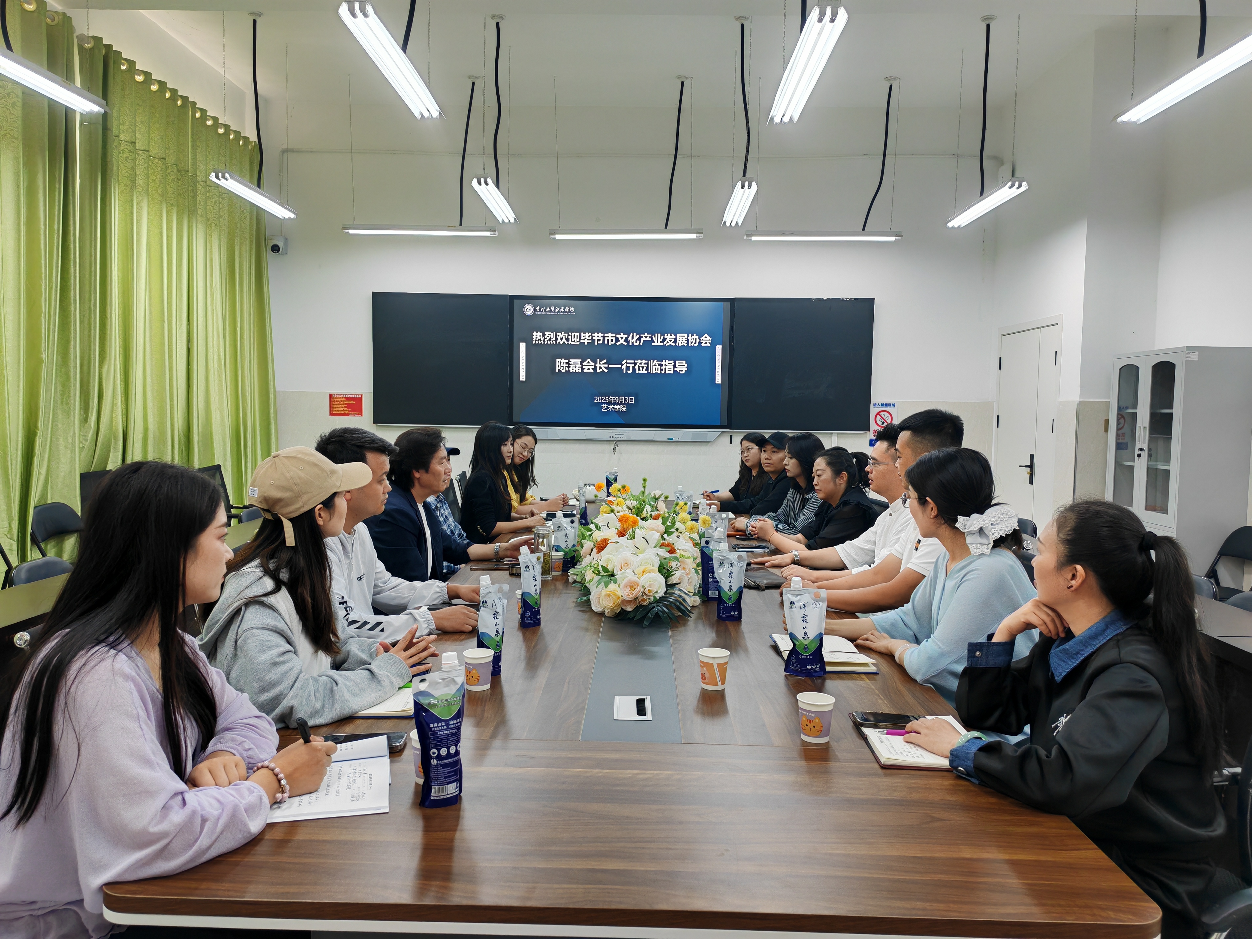 最后,双方共同敲定了后续工作计划:将于9月30日前签订校级战略合作协议,明确合作目标与各自责任;协会将为学院授予相关荣誉牌匾,进一步扩大学院在赋能非遗民族艺术传承创新方面的社会影响力;同时尽快启动金沙县系列文创设计、“毕节有你”品牌设计等具体项目,确保合作早日落地见效,为毕节文化产业高质量发展与非遗传承创新注入全新动能。此次座谈会为我校艺术类专业进一步提升高技能应用型人才培养质量、增强服务地方非遗文化传承与创新能力提供了宝贵机遇,也为学校与行业、区域经济深度融合奠定了坚实基础。