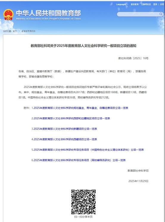 喜报|beat365官方网站1项课题获批2025年度教育部人文社科研究青年基金项目立项