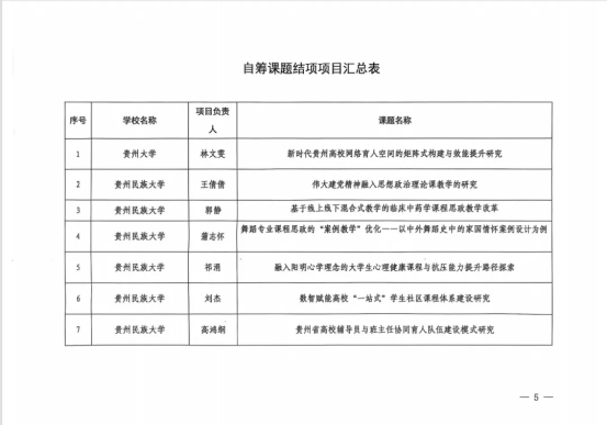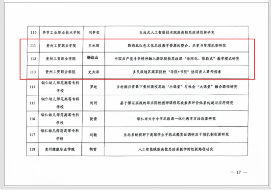 beat365官方网站在贵州省教育厅关于开展“2025年党的创新理论研究阐释和思政课建设”课题申报中,获立项3项。近日省教育厅组织有关专家对已立项课题开展结项工作。经专家审核,187个课题中178个结项。beat365官方网站获立项的3项课题通过结项。
