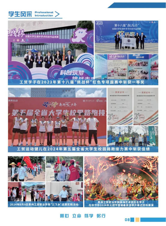 学校牢记为党育人、为国育才办学使命,落实立德树人根本任务,依托辰林教育的集团化办学优势,确立“质量立校、人才强校、文化铸校、特色兴校”发展战略,贯彻“三元育人”(健全人格、复合知识、实践能力)、“理念+工具+制度”的校本理念,实施师生“双养工程”(教师养德修为、学生养成教育)、“OKR管理”,开展抓规范、抓特色、抓成果、抓“两服务”的“四抓”工作范式,不断推进内涵建设、特色发展、高质量发展,形成了具有贵工贸鲜明特色的人才培养模式:以工、贸为主、多学科协调发展,以实践教学为重心,以校企合作、产教融合为路径,以实验实训和职场实训为平台,理实一体、课证与产学研用相结合,AI技术赋能,“双师型”教师教学,培养较强工程实践与创新能力、具有时代工匠精神的高素质技术技能型人才。学校坚持立足地方、服务地方,注重产教融合、工学结合,实施引企入校、开放办学,赋能产业升级、乡村振兴。近年来,学校共斩获79个奖项,国家级一等奖1项,省级一等奖6项,省级二等奖11项,省级三等奖46项,省级优胜奖2项等。科研项目方面获批市社科联项目立项15项;获批省社科联项目立项2项;获批省教育科学规划课题项目立项11项;获批省高校人文社科项目立项2项;获批教育部高校人文社科项目立项1项;获批中华职教社课题项目立项1项。2023年成功获批教育部第二批信息化支撑职业院校校企合作专业共建项目,并加入全国新一代信息技术创建行业产教融合共同体理事单位,获批2024年中德先进职业教育2个项目“汽车维修”“工业机器人技术”。近年来,学校共斩获110余奖项,其中国家级一等奖3项,省级一等奖12项,省级二等奖18项,省级三等奖56项等。