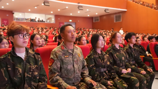 9月3日,朱锡龙与我校军训新生一同观看阅兵盛况