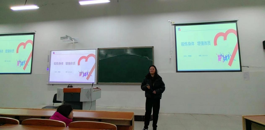 李娅晶首先从社会热点词条“脆皮大学生”引出大学生体质现状及存在的问题。她通过大量的视频和案例向同学们展示了大学生身体素质和健康状况日趋下降的社会现状,让同学们积极地参与讨论并分享自己对加强体育锻炼,增强体质的看法。在分享过程中同学们对“锻炼身体、增强体质 ”虽有着不同的见解,但都一致赞成,强健的体魄对于搞好学习和生活的重要性不言而喻。