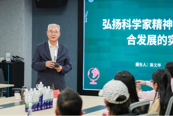 陈文举以科学家精神的内涵解析切入,深入阐述科学家精神的要义。他指出,科学家精神首先体现在实证为本的科研态度,科学家以客观事实为依据,通过严谨的实验设计和数据验证推动科学进步。其次表现为突破边界的创新意识,科学家敢于挑战传统理论框架,通过原创性研究解决人类面临的重大难题。再者,持续迭代的探索精神也是科学家精神的重要组成部分。