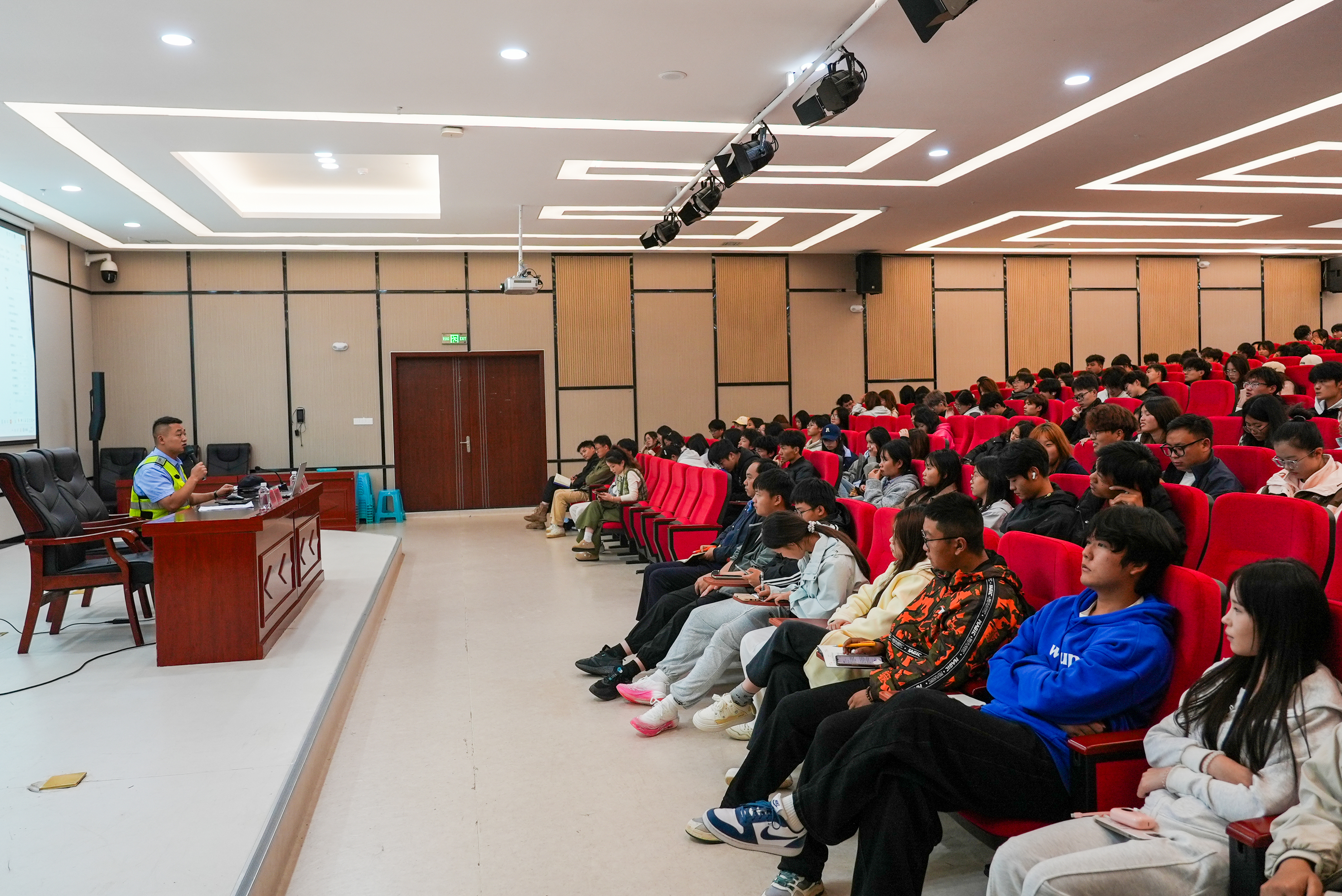 为进一步加强交通安全宣传教育,切实增强师生的交通安全意识与风险防范能力。9月26日,beat365官方网站在图书馆报告厅组织开展交通安全教育讲座。本次讲座由学校保卫处牵头,联合学工处、贵州辰林工贸技师学院,特别邀请威宁自治县公安局交通警察大队十中队民警徐祥峰到校授课。讲座由学校保卫处副处长马永全主持,共计400余名师生参加。