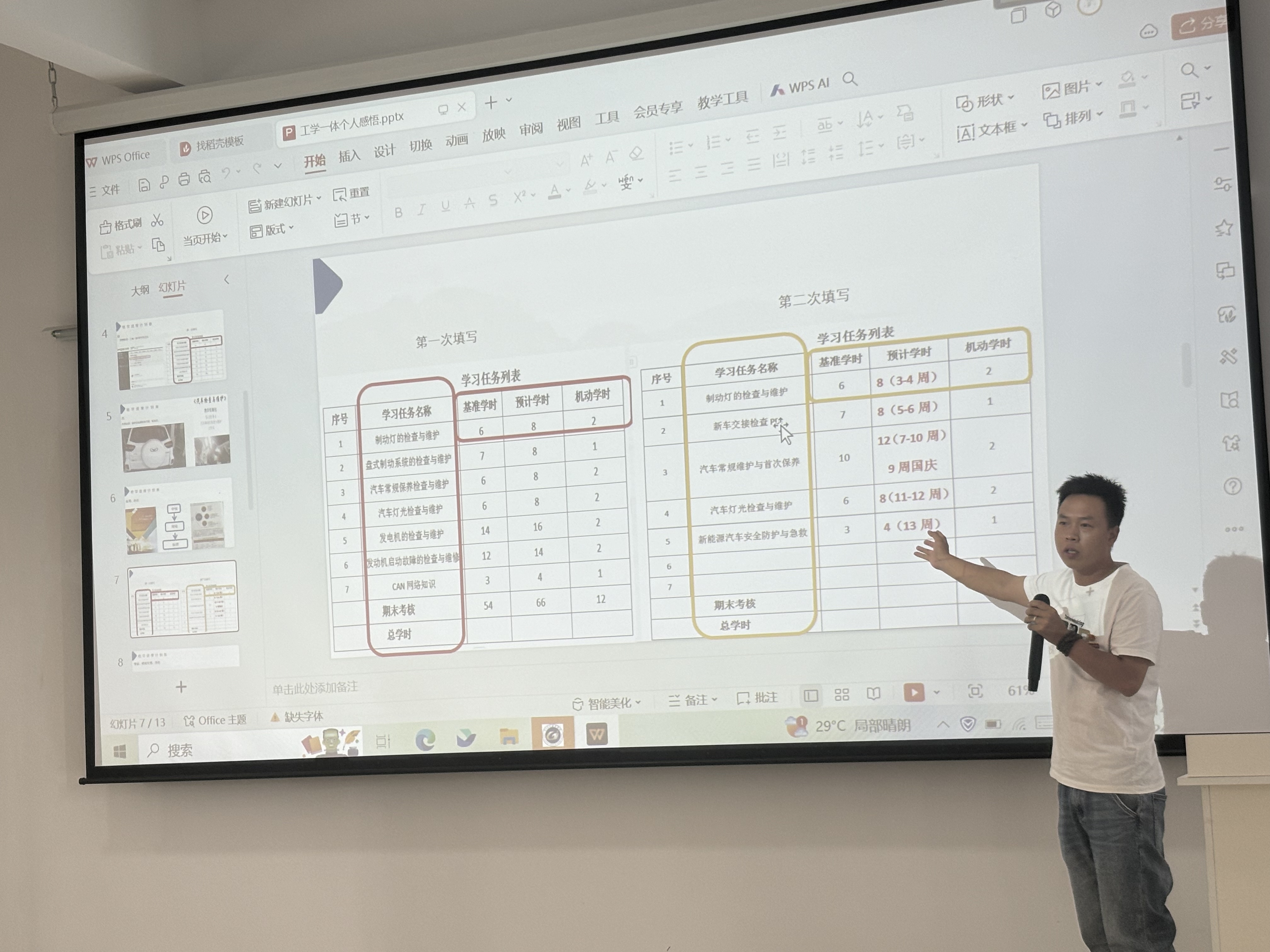 第一位分享工作页的是汽修专业的罗昌稳老师。罗老师告诉我们,他上课会利用工作页布置很多课堂任务,让学生沉浸其中,等学生动手操作之后再把操作步骤讲给他听。他认为如果老师整节课都在台上讲,学生就会容易听得打瞌睡,他目标是成为一个“沉默寡言”的老师,他把表达的机会给学生,让学生使用工作页了解专业知识、锻炼动手能力、扎实理论基础和促使学生做出成果。