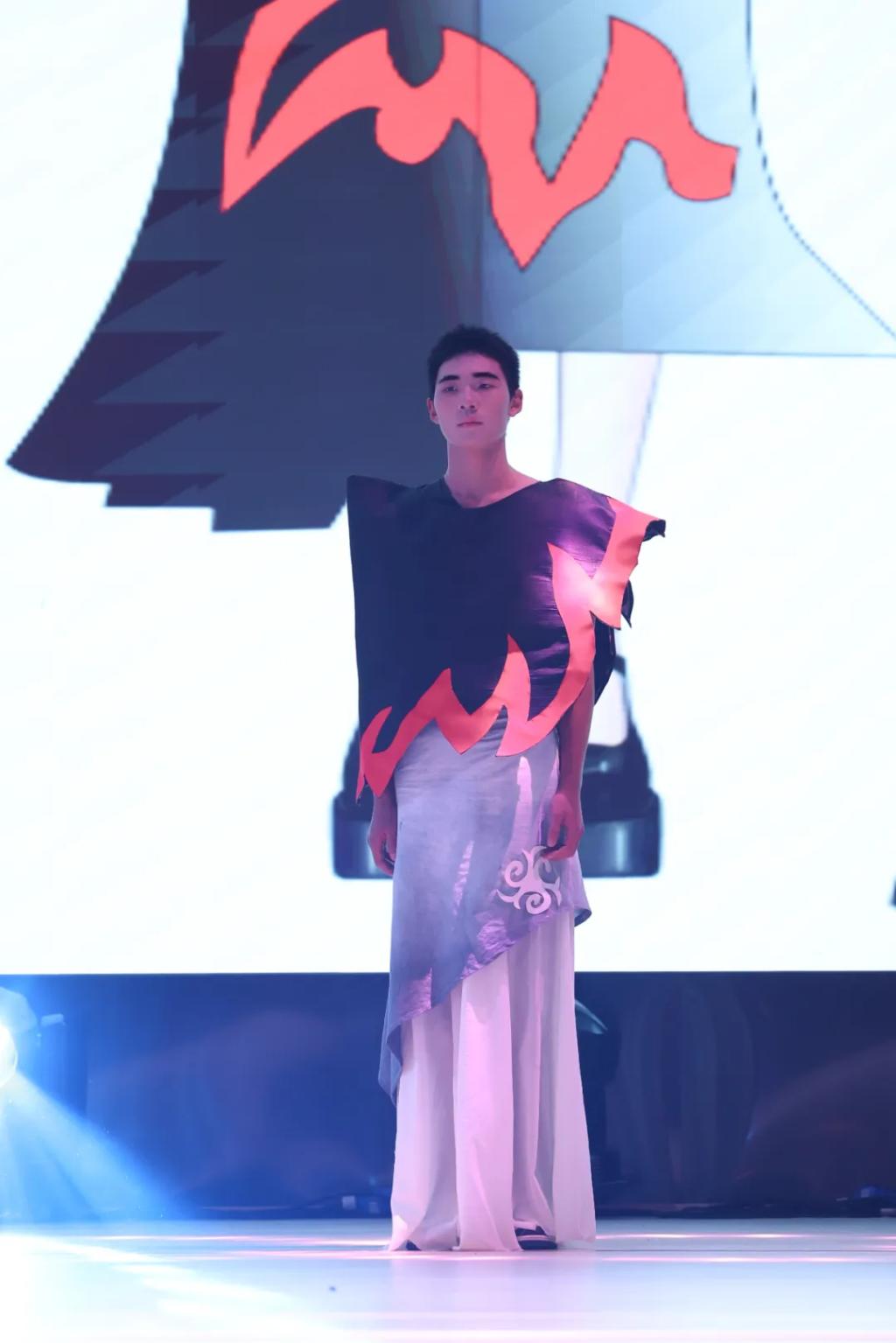 我校师生师巧妙地将传统与现代融合,赋予非遗民族服饰新的生命力。有的作品以彝族火把节为主题,将传统服饰细节与现代创新相结合,色彩鲜艳,搭配精美的银饰,展现出彝族文化的热情与活力;有的作品灵感源自苗族蜡染工艺,以蓝色为主色调,搭配红色点缀,选用棉、丝布等面料,融入传统图腾纹样,既传承古老技艺,又彰显时尚感;还有的作品在回族服饰设计中,注重头饰与植物纹样的搭配,采用拼接和不规则设计,凸显民族特色与创新性。