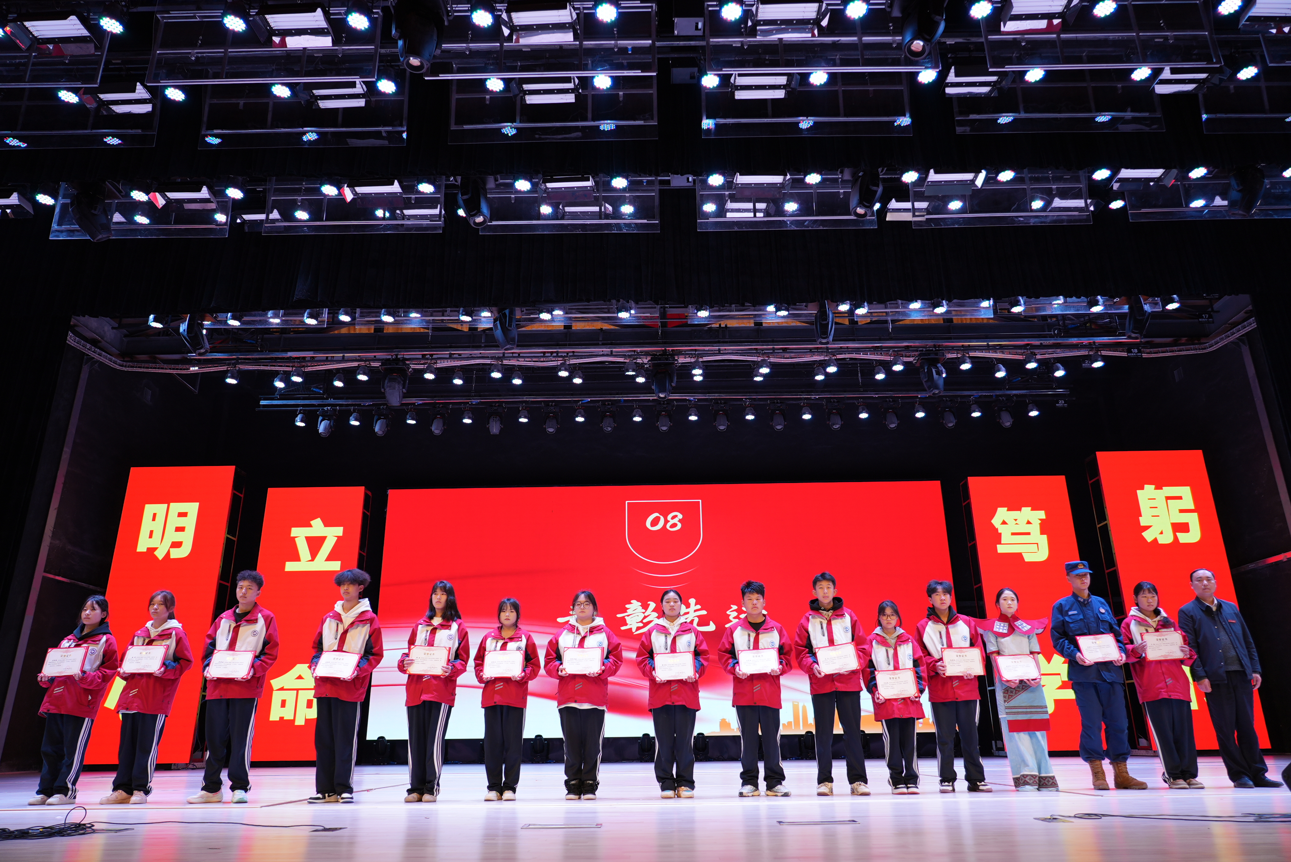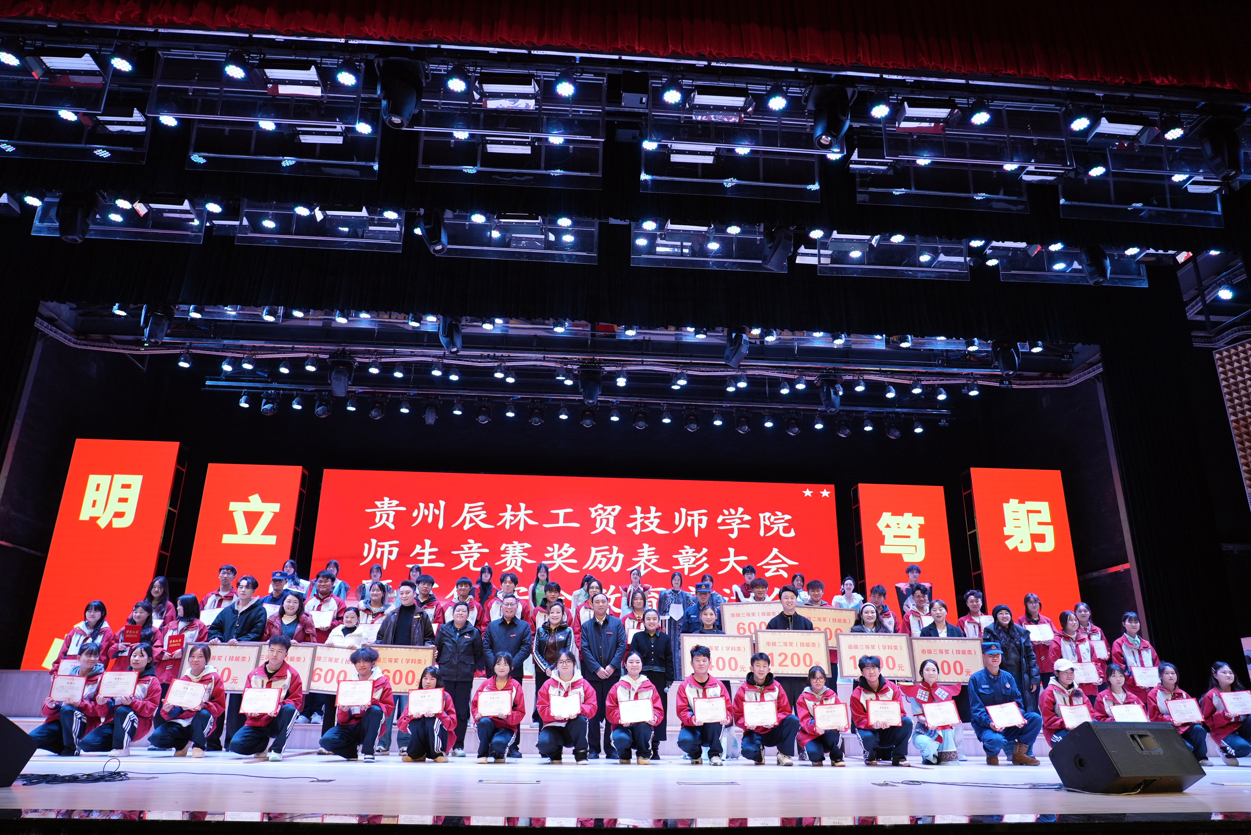 技能筑梦育匠心,深耕职教促发展。12月12日,贵州辰林工贸技师学院在辰海大剧院召开“赛教融合展硕果 工学一体育匠心”师生竞赛奖励表彰大会暨寒假安全教育宣讲会。贵州辰林工贸技师学院校长宋新乐,贵州辰林工贸技师学院执行校长刘毅,学工处副处长朱姝淑,招生就业处主任张善同及全体师生参加会议,会议由教务处副处长周婧主持。