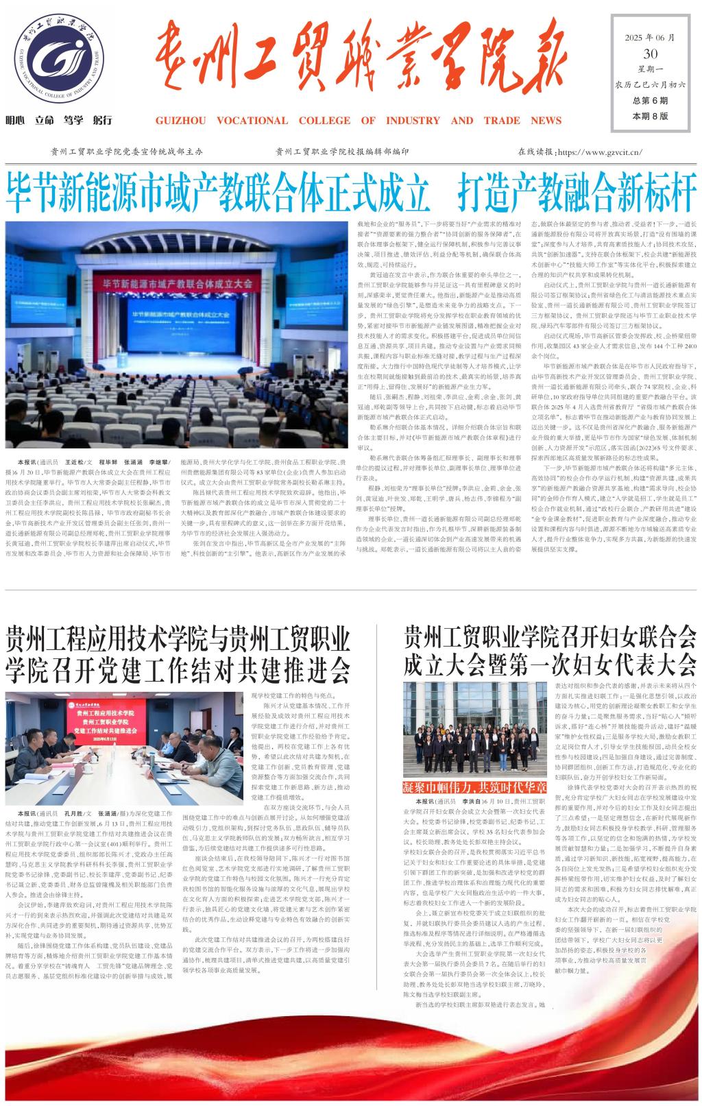 6月30日,毕节新能源产教联合体成立大会在贵州工程应用技术学院隆重举行。毕节市人大常委会副主任程静,毕节市政治协商会议委员会副主席刘祖荣,毕节市人大常委会科教文卫委员会主任李洪应,贵州工程应用技术学院...