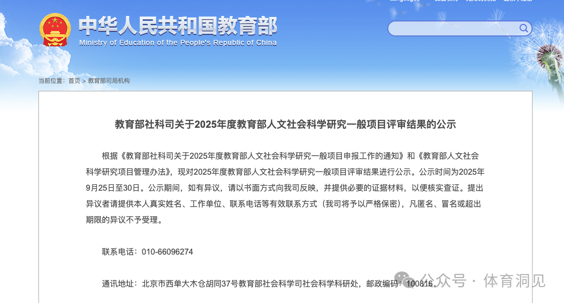 2025年3月27日,由我校国防教育与体育学院报送的《体教融合视域下体育研学促进青少年体育素养的生成机制与实践路径研究》课题,经教育部社科司评审,于2025年10月获2025年度教育部人文社会科学研究青年基金项目立...
