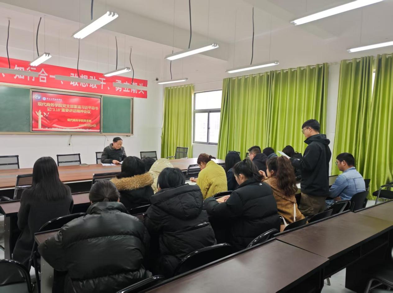 现代商务学院党支部重温习近平总书记“3·18”重要讲话精神