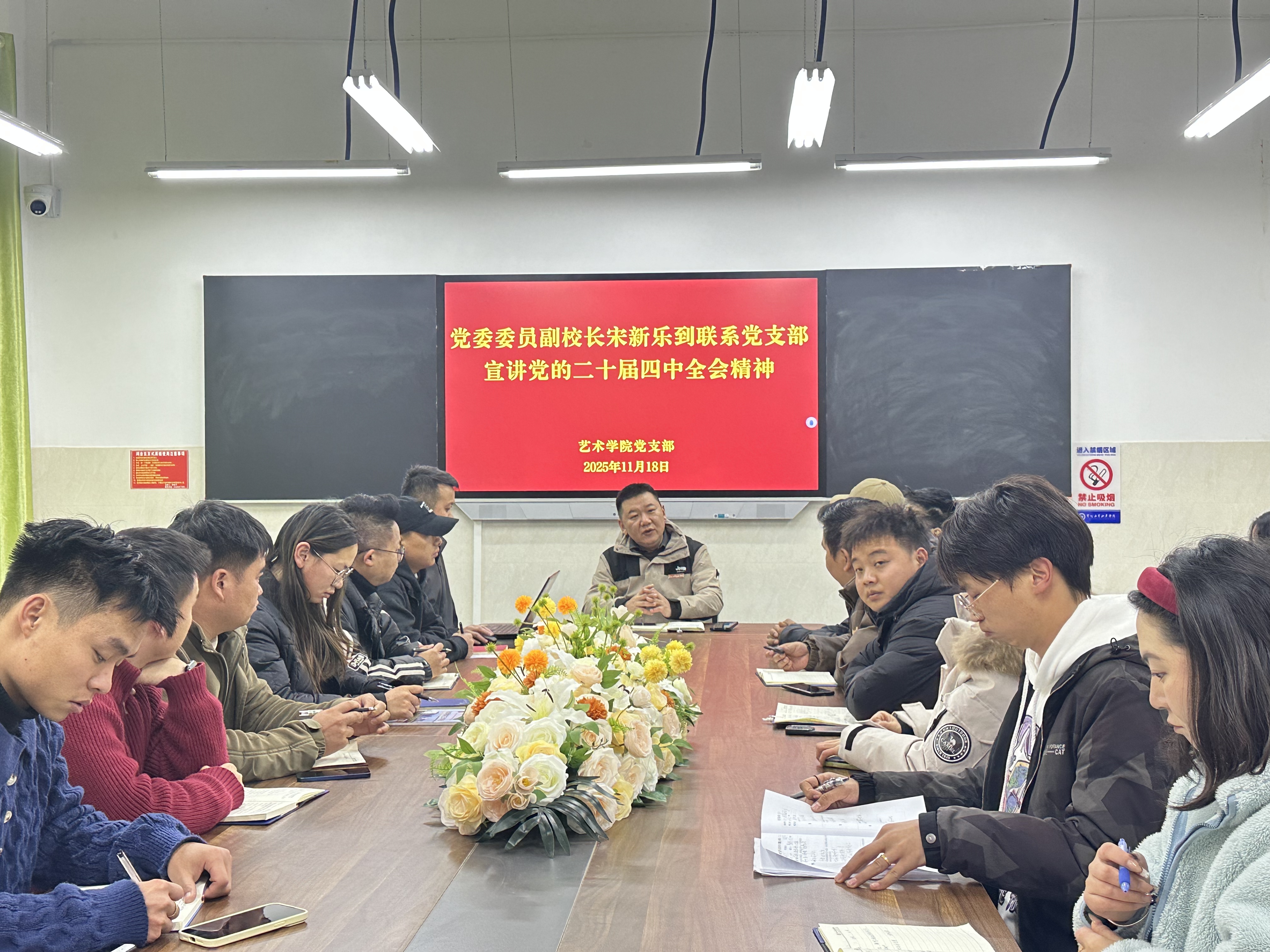 为深入学习贯彻党的二十届四中全会精神,切实把思想和行动统一到党中央重大决策部署上来,11月18日,党委委员、副校长宋新乐到艺术学院党支部,以《深学细悟党的二十届四中全会精神 凝聚奋进“十五五”新征程磅礴...